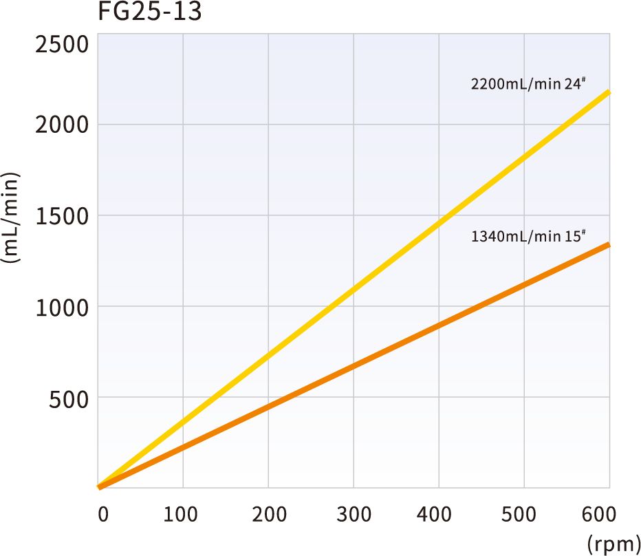 The FG15 uses tubing with a wall thickness of 1.6 mm and achieves a maximum flow rate of up to 2400 mL/min.
