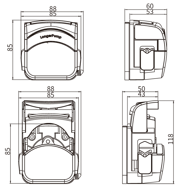 The pump heads are equipped with a spring‑loaded tubing clamp that automatically and securely fixes different tubing sizes. The robust IXEF housing, combined with PA6 rollers, ensures stable pumping performance and reliable operation.